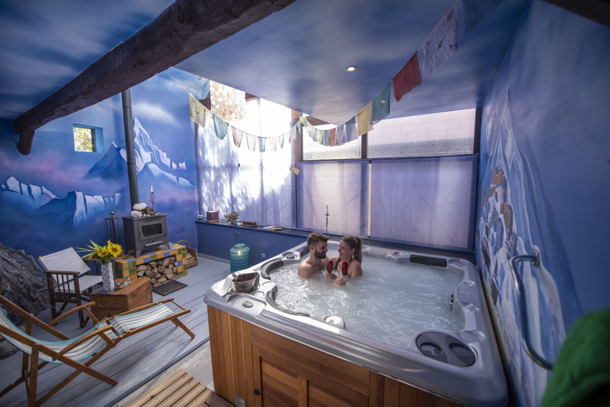 Ein zauberhafter Garten, ein unglaublicher Landschaftspark, ein bühnenreifes Ambiente erwartet Sie in diesen drei wunderschönen Suiten und ihren Duschbädern! Eine wunderbare Einladung zum Abschalten, die Ihnen William und Sébastien in ihrem Gästehaus bieten. Hier erreichen Sie ganz leicht den „Himalaya“, wie die ehemalige Schmiede heißt, die in eine traumhafte Wohlfühloase verwandelt wurde: blaue Pailletten an der Wand, ein Sprudelbad mit 37° C, ein Holzofen …