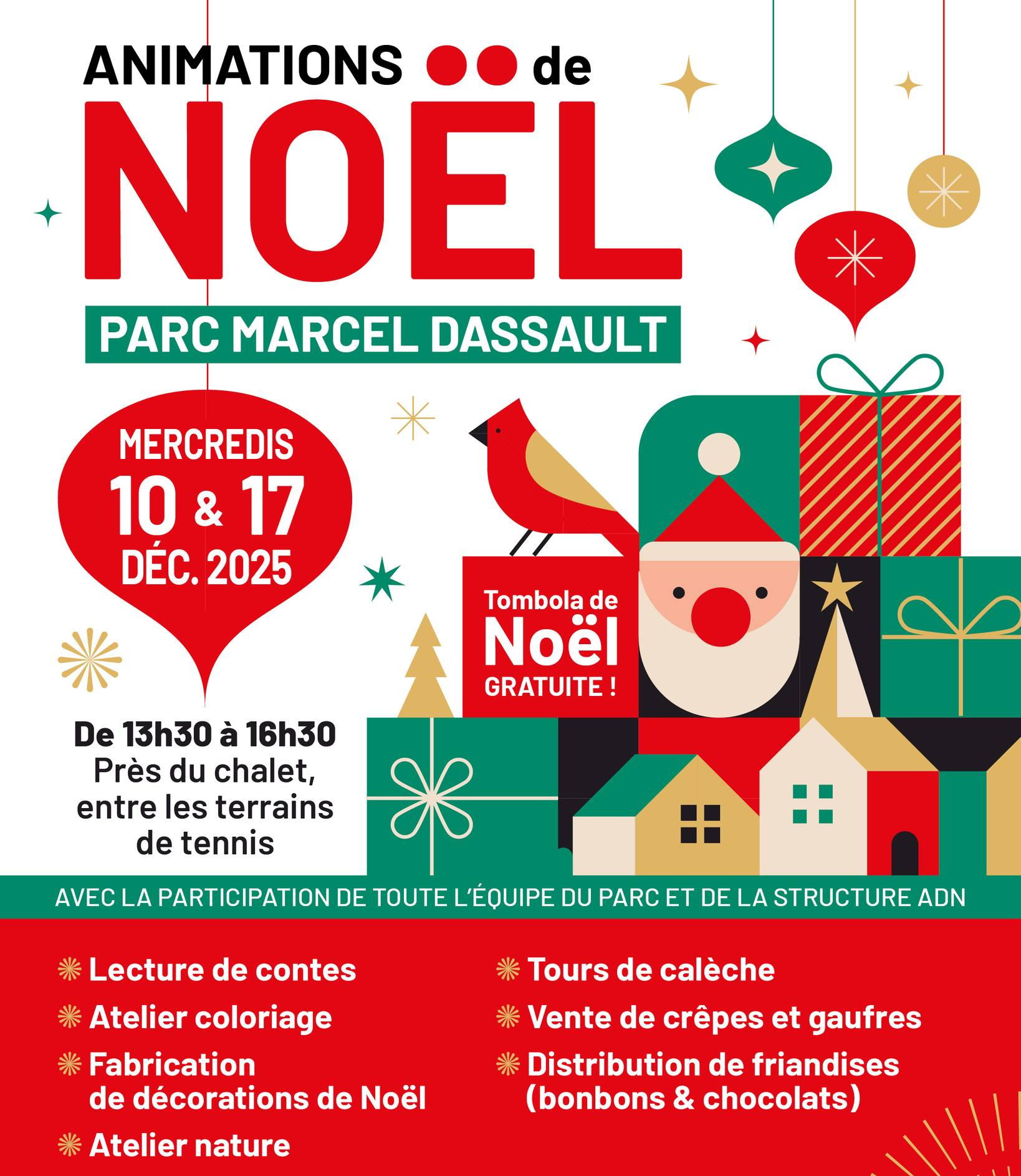 Les 10 & 17 décembre, de 13h30 à 16h30, profitez en famille d’un après-midi festif près du chalet : ateliers créatifs, lectures de contes, fabrication de décorations, balades en calèche, tombola gratuite, friandises… sans oublier les crêpes et gaufres pour se régaler !