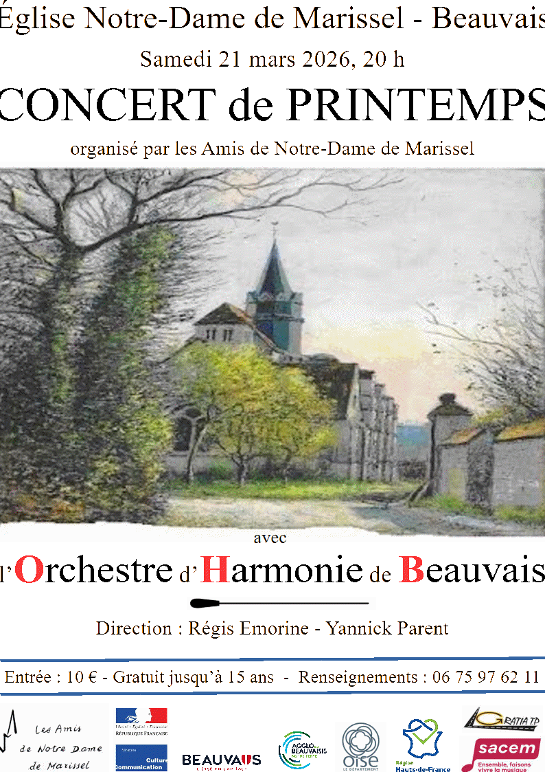 Concert organisé par les Amis de Notre-Dame de Marissel, en l'église de Marissel avec la participation de l'Orchestre d'Harmonie de Beauvais.