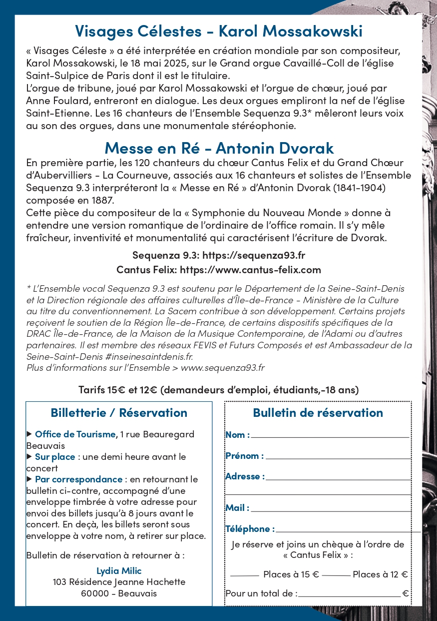 Ces voix du Chœur Cantus Felix de Beauvais et de l'ensemble Sequenza 9.3, dirigées par Catherine Simonpietri, vont se fondre sous les voûtes de l'église Saint-Etienne de Beauvais.