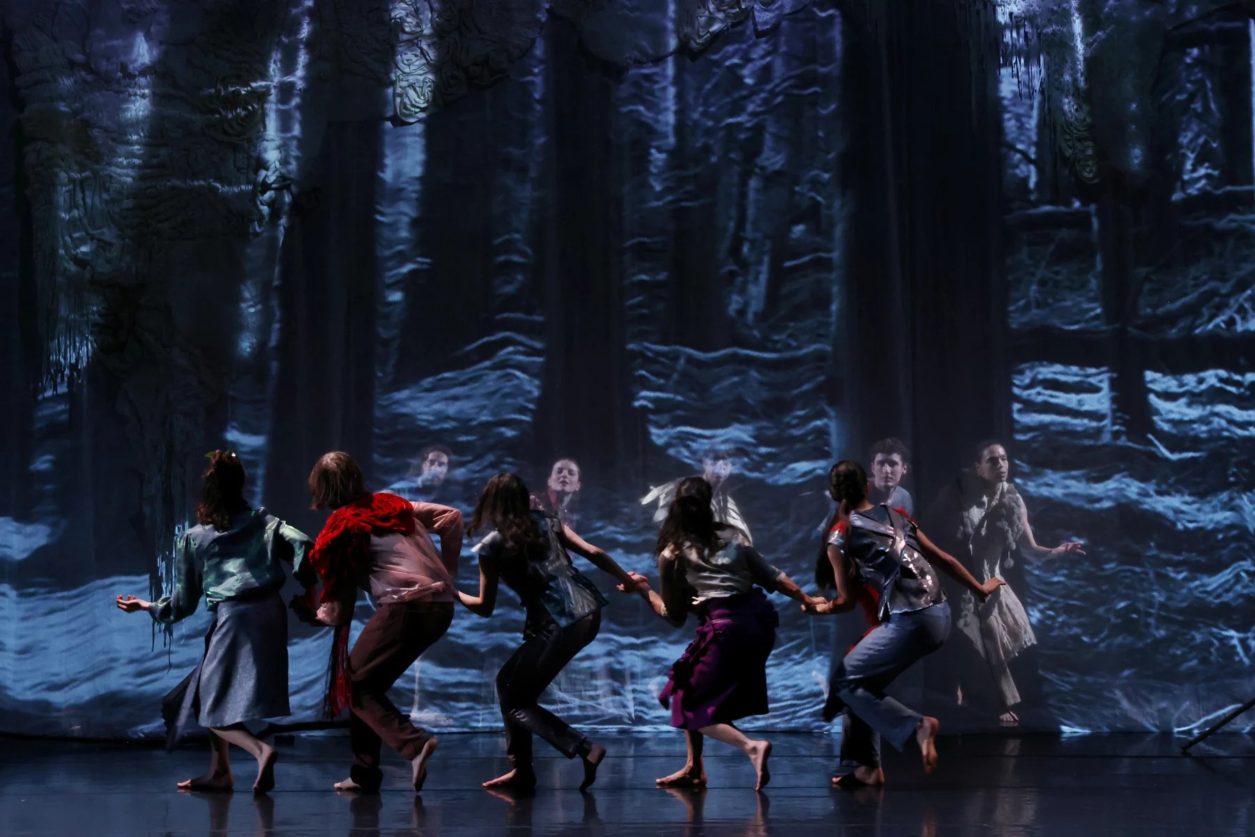 Avec The Gathering, Joanne Leighton nous offre un nouveau poème visuel où elle utilise les moyens de la vidéo, de la lumière et de la musique pour recréer une nature où elle nous invite à cheminer. Est-ce lié à ses origines australiennes, qui lui ont donné une sensibilité aux grands espaces, à la terre où la vie se déploie dans sa diversité et ses formes les plus inattendues ? Cette pièce est née du désir de créer une forme qui nous rapproche du vivant, de renouer et d’approfondir le lien entre les êtres et la nature. Ce plateau-forêt est en forte résonance avec le nom de la compagnie WLDN, qui renvoie à Walden ou La vie dans les bois, le roman d’Henri David Thoreau qui décrit l’expérience spirituelle, philosophique et pratique d’une vie solitaire dans la forêt.