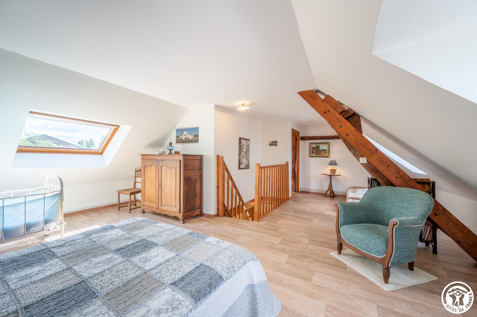 Hélène vous accueille dans sa maison de famille située sur l'ancienne exploitation agricole. Au rez-de-chaussée : Cuisine équipée avec micro-ondes, four, cafetière filtre, bouilloire, grille pain, lave-vaisselle, toute la batterie de cuisine et l' équipement est adapté à la capacité . Le salon dispose d'une jolie vue sur le jardin privatif du gite, il est équipée d'une belle cheminée , d'un canapé et d'une TV. La salle d'eau dispose d'une douche à l'italienne (120x90 cm), d'un lave-linge, d'un sèche cheveux et de WC. A l'étage, en mezzanine 1 lit 2 personnes et une banquette-lit 1 personne et une chambre (1 lit 1 personne) vous attendent. Stationnement dans la cour commune située sur l'avant du gite. (2 véhicules) Jardin privatif clos avec salon de jardin . Lit et chaise bébé à disposition. Wifi. De novembre à mars : relevé électricité - facturation au delà de 10kw/jr. Une caution spécifique (50€) pour l'accueil des animaux vous sera demandé sur place par la propriétaire.