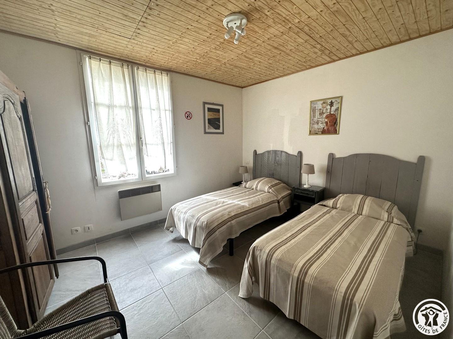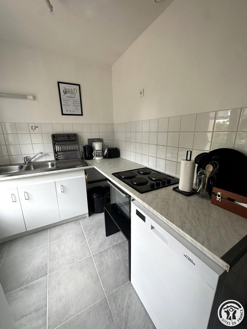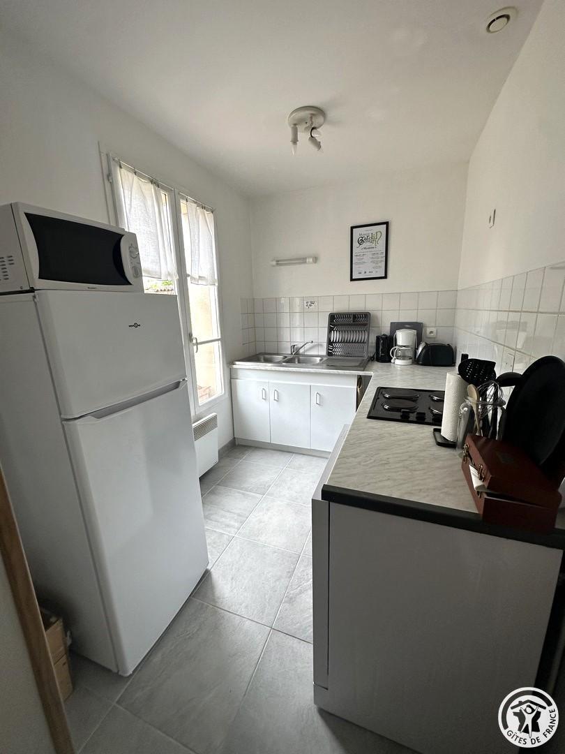 Appartement de 56 m² aménagé pour 4 personnes (2 chambres) situé au rez-de-chaussée d'une maison indépendante, abritant 2 autres appartements. Cuisine équipée ( lave vaisselle, cafetière, four, micro-onde, réfrigérateur...) ouverte sur le salon bénéficiant d'une TV, d'un canapé. 2 Chambres pour 2 personnes chacune (1 lit 140x190 cm - 2 lits 90x190 cm). Salle d'eau et WC. Jardin commun aux 3 appartements - Chauffage électrique selon consommation (relevé de compteurs). Connexion Internet (Wifi). Lave-linge commun. Gîte non fumeur. Un parking public est mitoyen aux gites, vous pourrez vous y stationner durant votre séjour. Sur place 2 autres gites pour 2 personnes et 4 personnes (possibilité de loger 10 personnes au total) G601904 + G601905. Les draps et le linge de toilette, ainsi que le ménage en fin de séjour ne sont pas compris dans le prix et vous seront proposés en option supplémentaire.