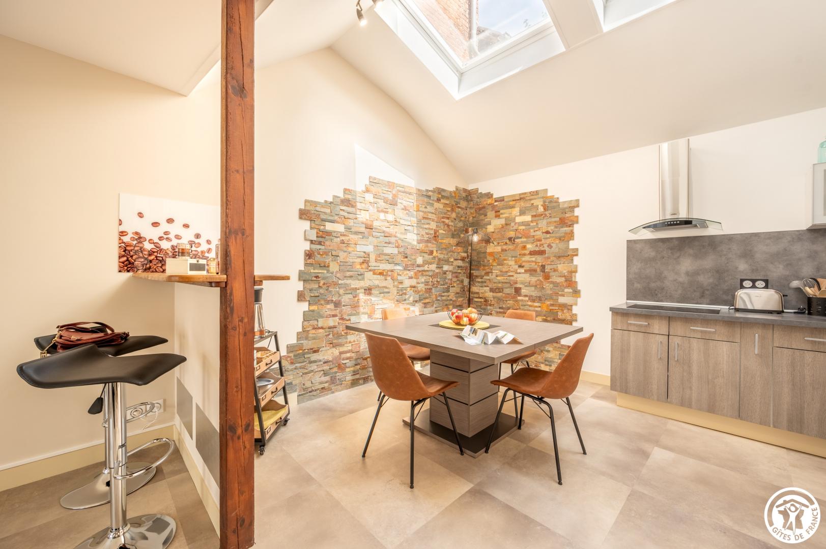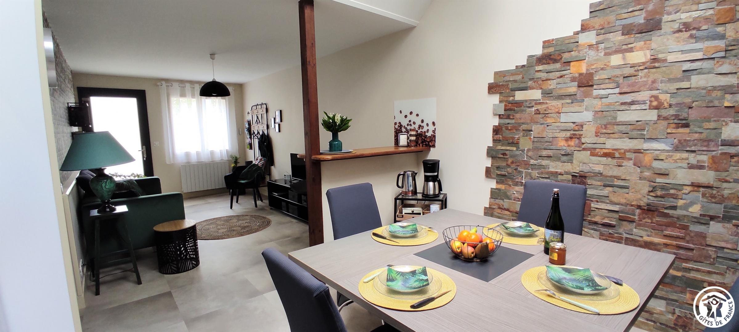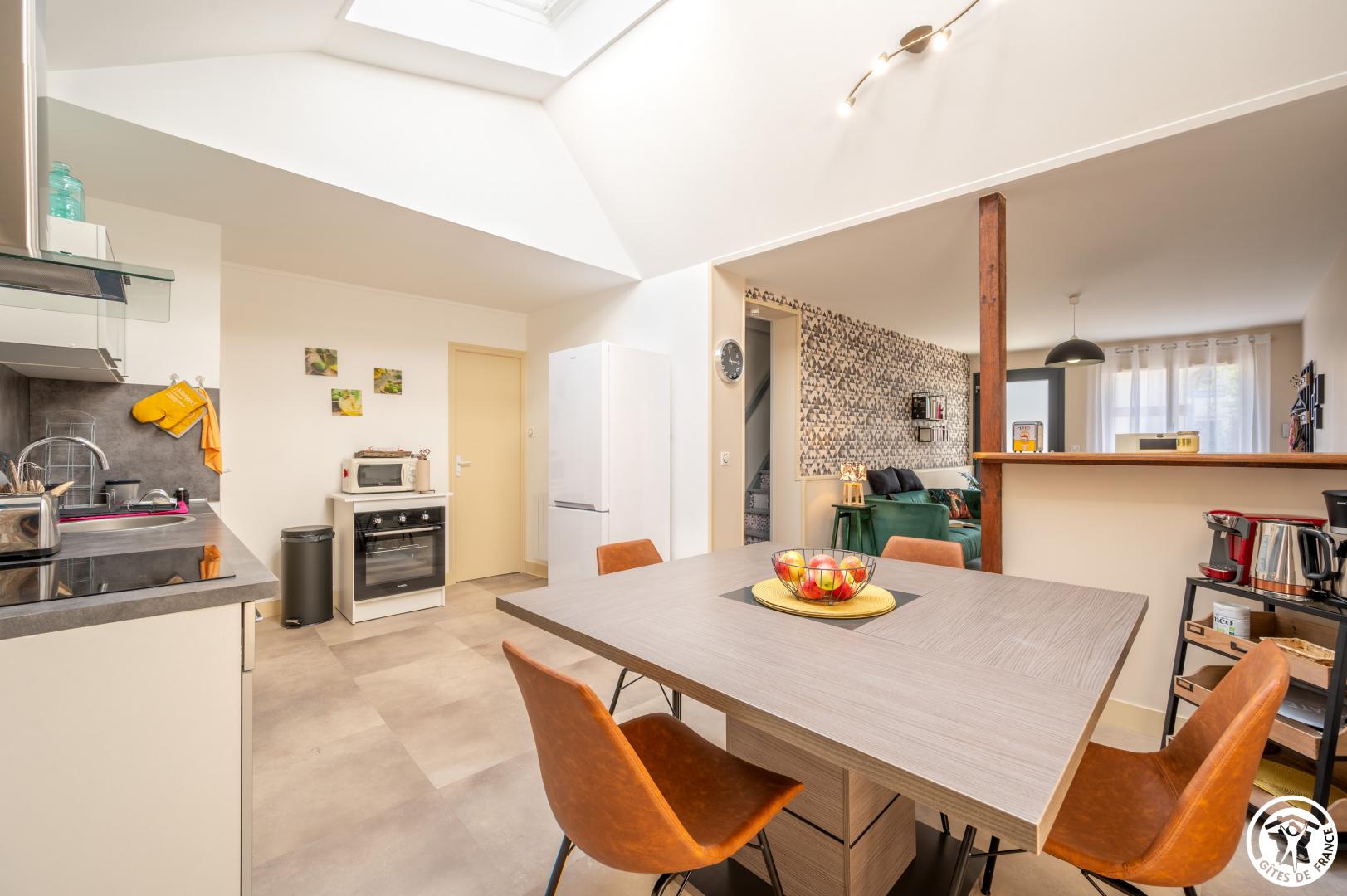 Catherine vous accueille dans son gite "Les Hirondelles", maison de ville (sans jardin), indépendante de 62 m² aménagée sur 2 niveaux, elle dispose de 2 chambres pour 4 personnes. Au rez-de chaussée: Séjour/ salon , TV, ouvert sur la cuisine équipée (plaque induction 3 feux, lave vaisselle 9 couverts, cafetière, four, micro-onde...), salle d'eau avec douche (70x70cm), meuble vasque, sèche cheveux et wc fermé. (lave linge) Au 1er étage : 2 chambres pour 2 personnes (2 lits 90x190cm et 1 lit 140x200 cm). Connexion internet en Wifi. Garage pour stationner petit véhicule (2.40 x 4.10 m), parking public à 10m du gite. Pour votre confort, le linge de maison, les serviettes de toilette, les draps, le chauffage et le ménage de fin de séjour sont compris dans la prestation. Un forfait entreprise est proposé aux professionnels (changement de draps et ménage pendant le séjour) Lit bébé, chaise haute et barrière de sécurité pour l' escalier à disposition.
