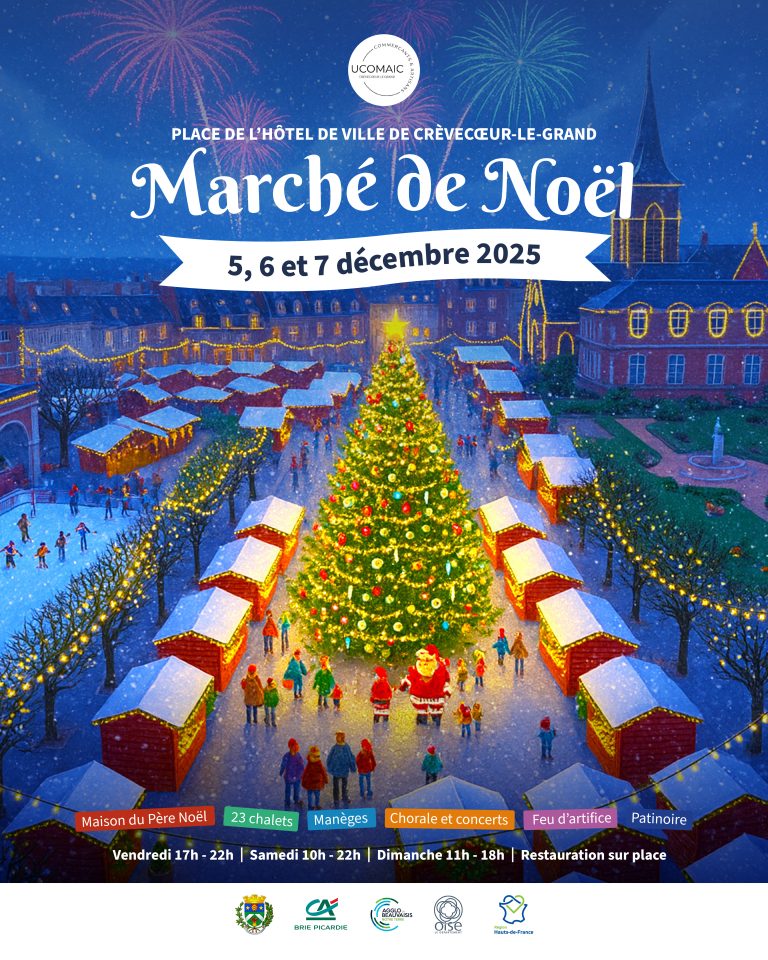 Cette année encore, la magie de Noël s’installe au cœur de Crèvecœur-le-Grand, sur la Place de l’Hôtel de Ville ! Du 5 au 7 décembre, venez flâner, déguster, découvrir et partager un moment chaleureux en famille ou entre amis.