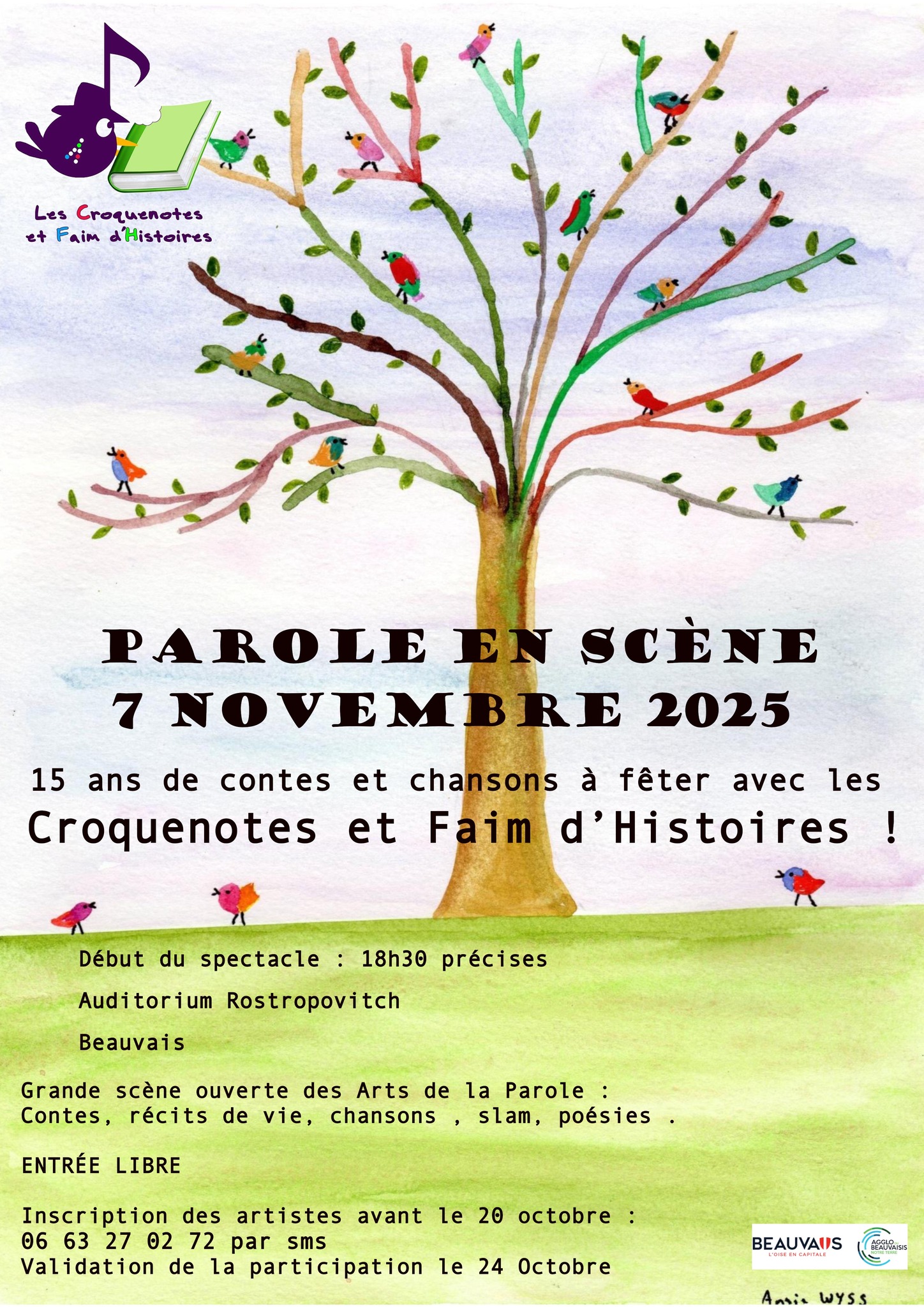 Grande scène ouverte des Arts de la Parole : conte, récit de vie, chanson, slam, poésie.