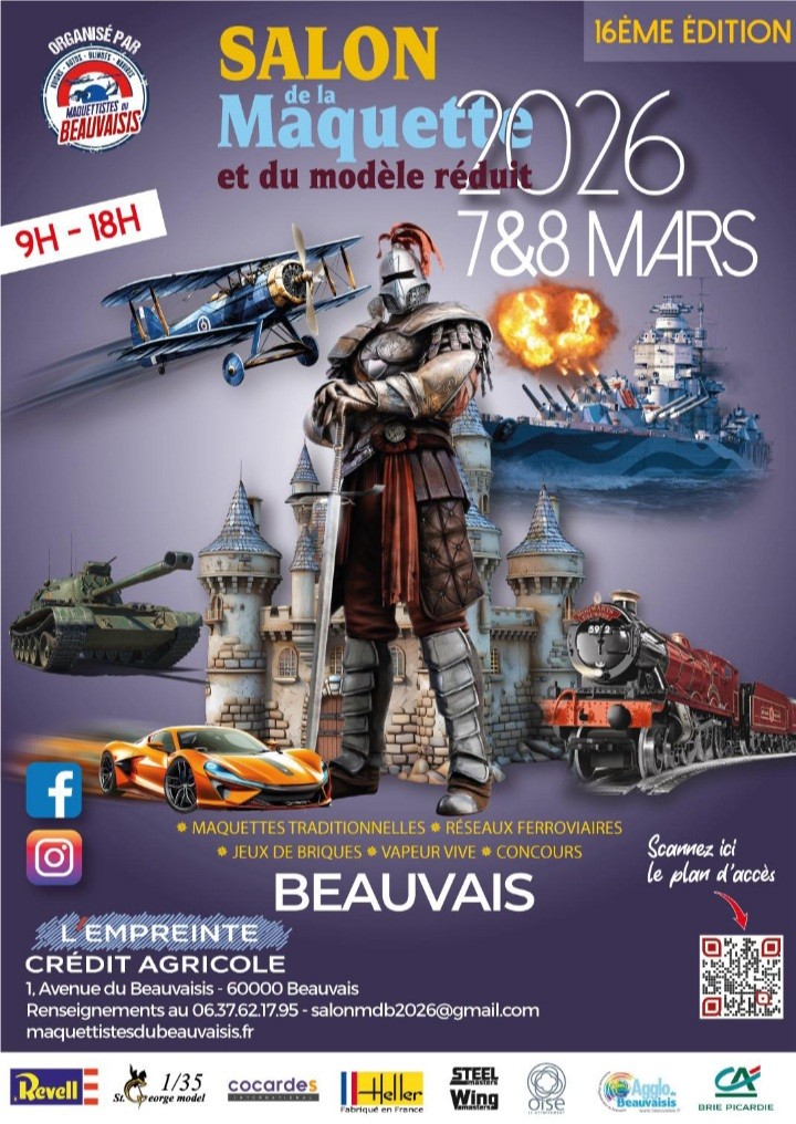 Notre association Les Maquettistes du Beauvaisis organise le 16ème Salon de la maquette et du modèle réduit qui aura lieu dans la salle de l’Empreinte du Crédit Agricole, 1 avenue du beauvaisis 60000 Beauvais, les samedi 07 et dimanche 08 mars 2026.